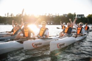 The kayaking wet card course is an enjoyable and social activity at the idyllic Øvresetertjern, at the entrance to Nordmarka. We provide popular Epic kayaks